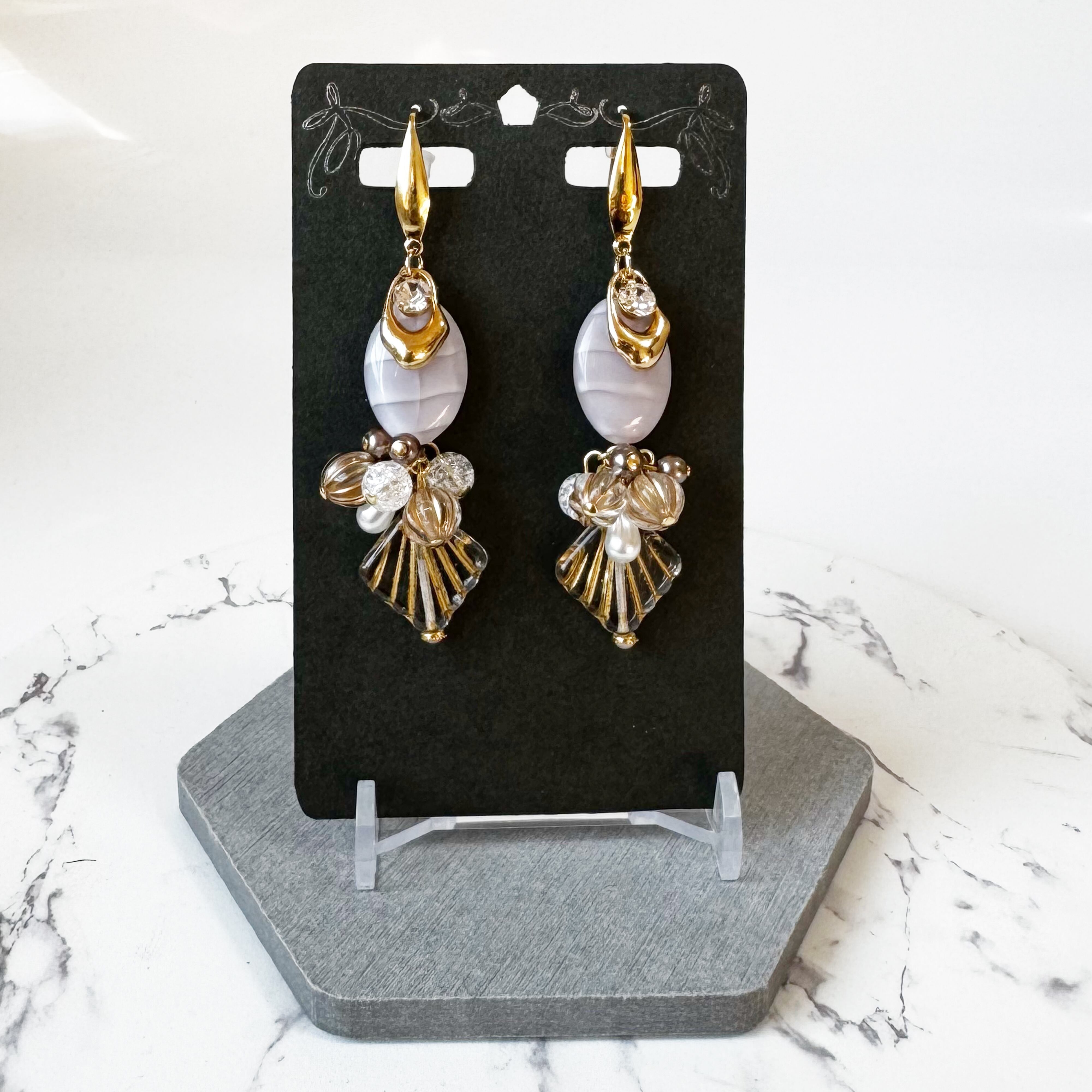 片耳ずつの金具変更も可能です。その場合は【右耳をイヤークリップ・左耳をピアス】
