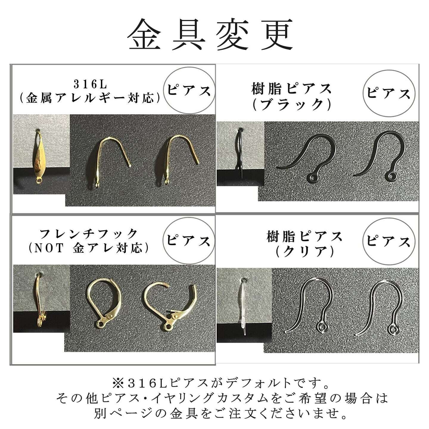 片耳ずつの金具変更も可能です。その場合は【右耳をイヤークリップ・左耳をピアス】